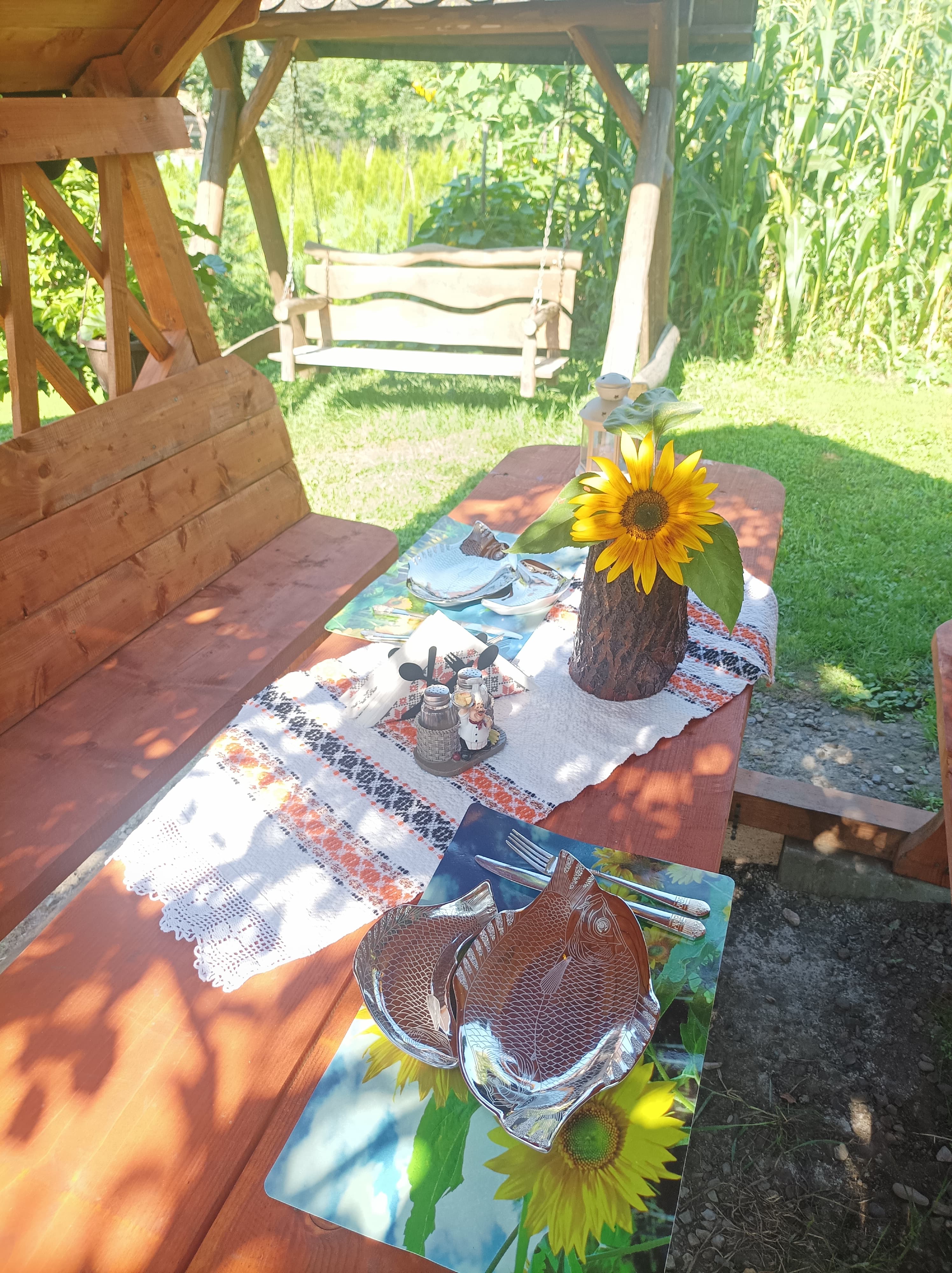 Nu avem bucătari cu diplome, avem doar mâini care muncesc pământul și grijă pentru un gust curat. Legumele vin direct din grădină, curcanul a crescut în ogradă, lactatele de la stână iar peștele direct din ferma noastră. Dorim să vă ridicați de la masă cu zâmbetul pe buze și cu sufletul omenit.