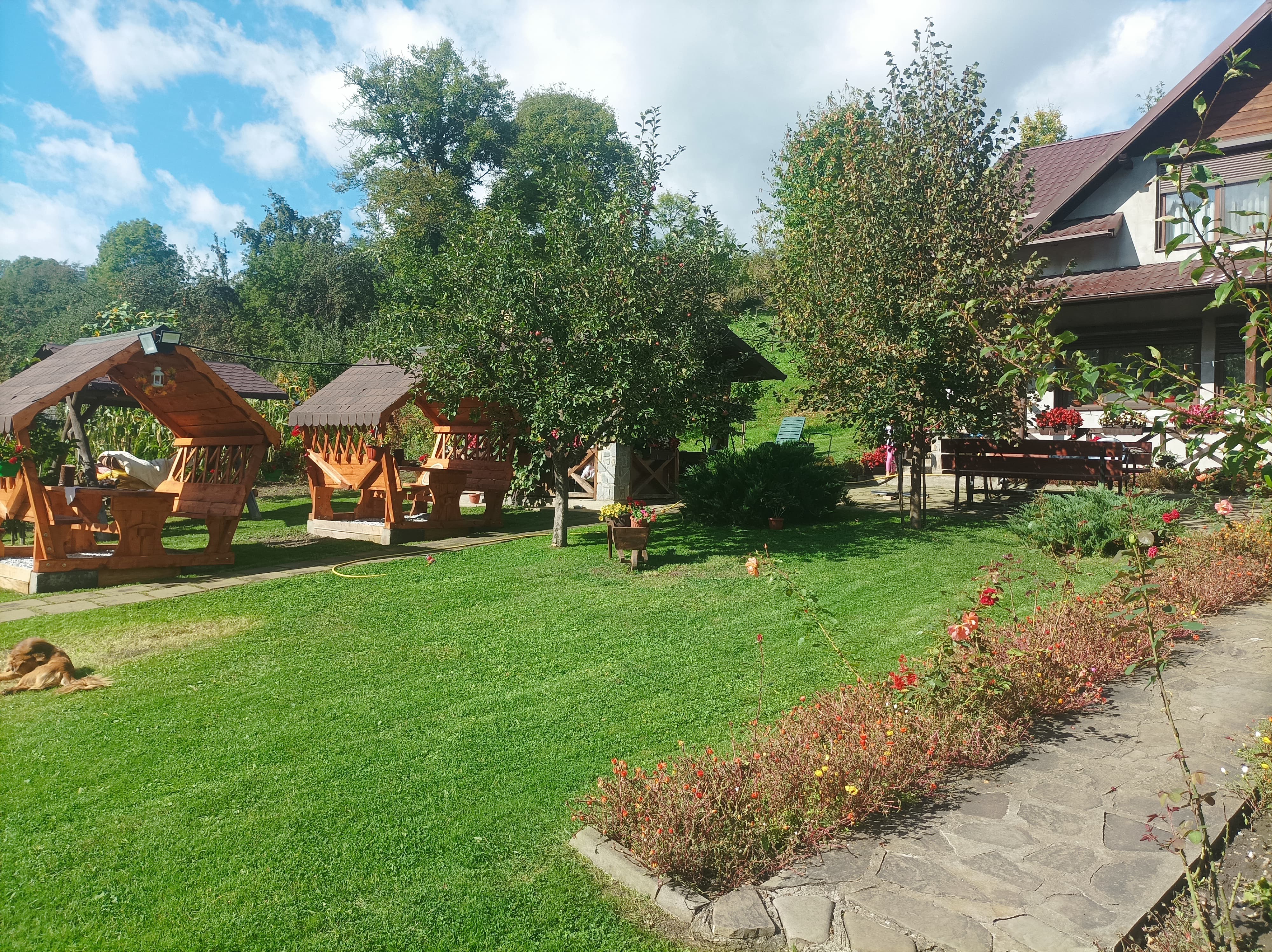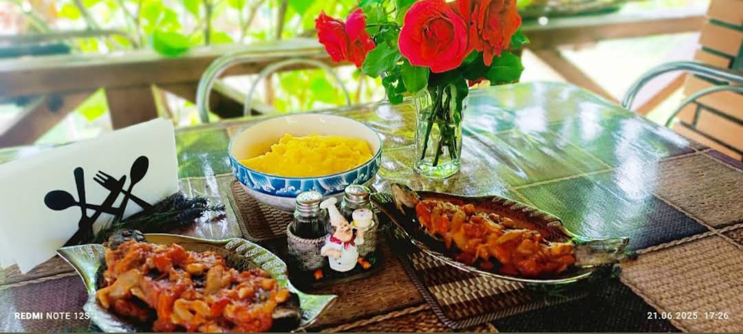 Nu avem bucătari cu diplome, avem doar mâini care muncesc pământul și grijă pentru un gust curat. Legumele vin direct din grădină, curcanul a crescut în ogradă, lactatele de la stână iar peștele direct din ferma noastră. Dorim să vă ridicați de la masă cu zâmbetul pe buze și cu sufletul omenit.